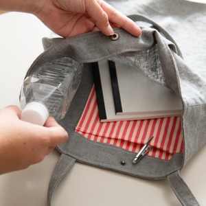 中は、ポップなカラーのストライプ柄の生地を使ったポケットがついています。